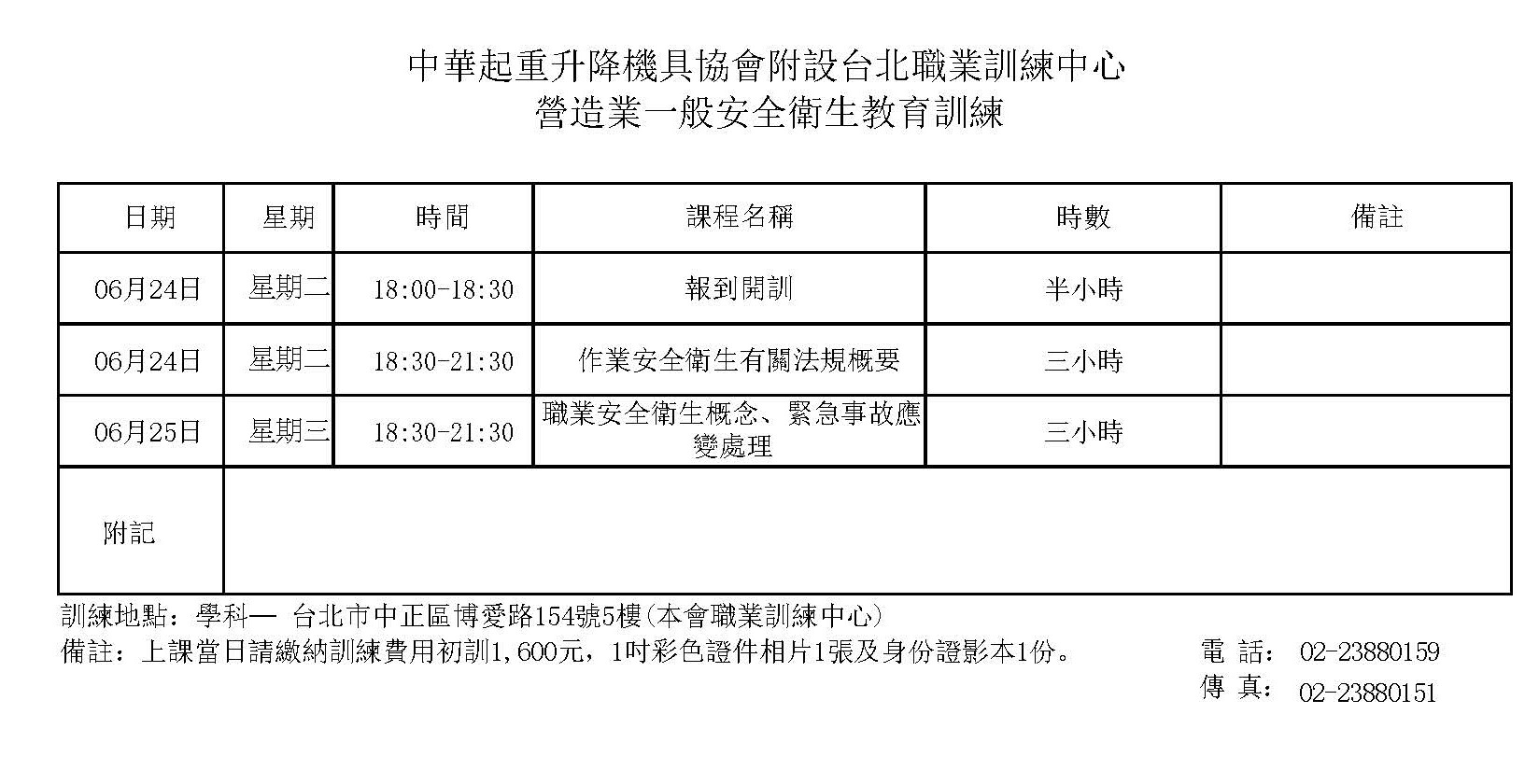 114 年 中華起重升降機具協會附設台北職業訓練中心 - 營造業一般安全衛生教育訓練