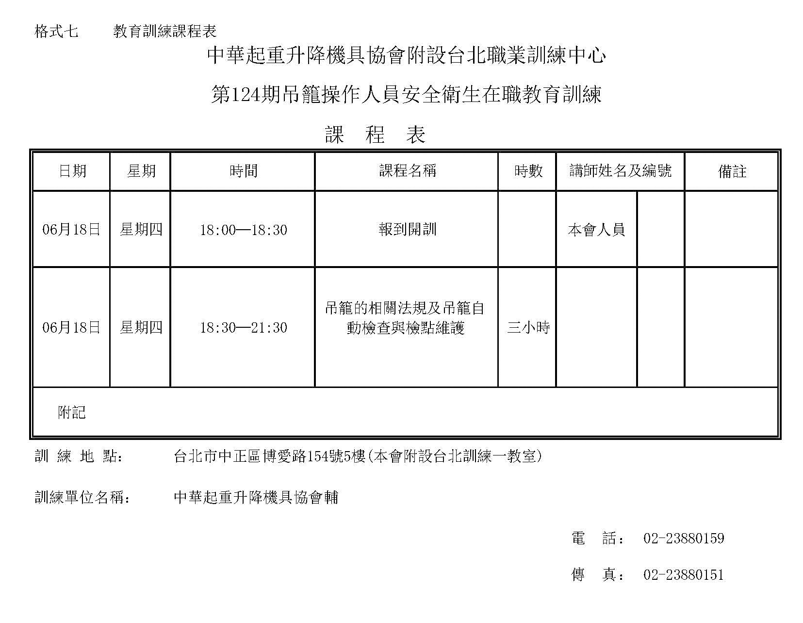 ( 本會附設台北訓練第一教室 ) - 訓練單位名稱:中華起重升降機具協會